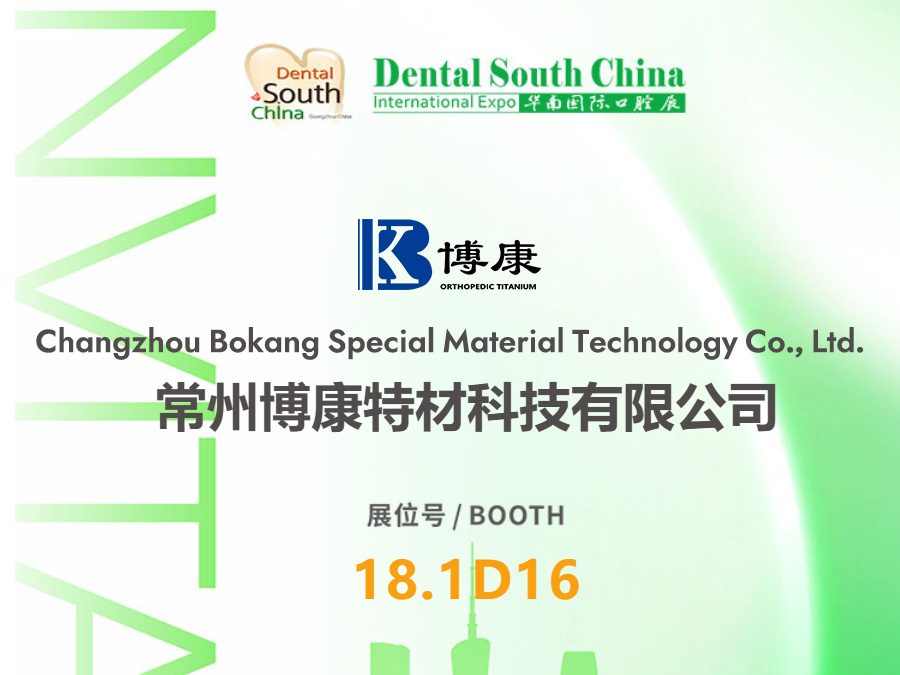 博康特材,作为专业的口腔及医疗用钛材料制造商,将参加 第31届华南国际口腔展(DSC 2026)。诚挚邀请新老客户及行业同仁莅临 18.1D16 展位,深入了解博康特材在口腔与医疗材料领域的最新产品与...